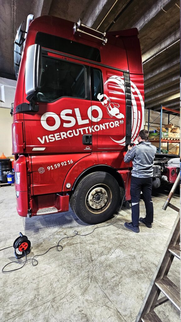 Vi leverer skreddersydd dekor til lastebiler, kranbiler, renovasjonskjøretøy, tankhengere og andre store arbeidskjøretøy. Våre løsninger tåler tøe forhold, høy belastning og hyppig vask – samtidig som de gir et solid visuelt uttrykk som varer.