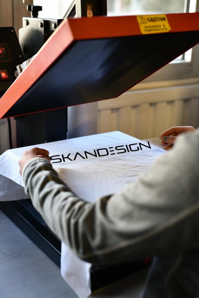 Butikken er ikke bare et utsalgssted – den er også et trykkverksted. Vi trykker eller broderer logoer og slagord direkte på tekstilene, og i mange tilfeller kan varene hentes samme dag. Vårt team bistår gjerne med design, fargevalg og størrelsesveiledning.