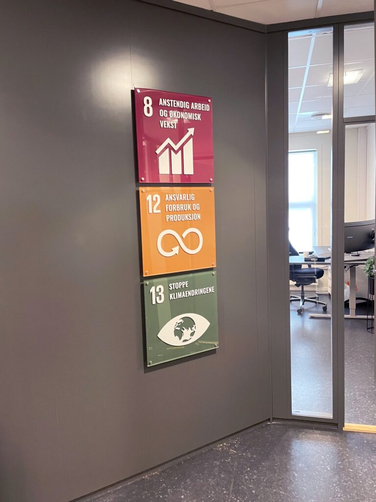 - Vi tilpasser skiltet etter materialer, veggtype, farger oglysforhold.